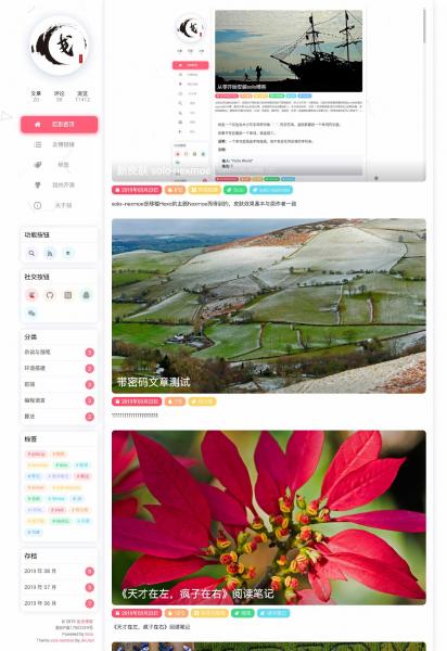 独立博客是一个表达情感,分享经验、生活的地方,最重要的就是能够随心记录点点滴滴。Solo 是一款 Java 开源博客系统,它实现了 B3log 分布式社区网络的博客端节点系统。Solo 是一款小而美的博客系统,专为程序员设计,Solo 有着非常活跃的社区,可将文章作为帖子推送到社区,来自社区的回帖将作为博客评论进行联动。